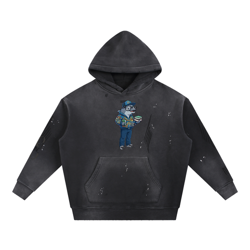 Adolpho Finely Vintage Washed Frayed Fleece Hoodie
